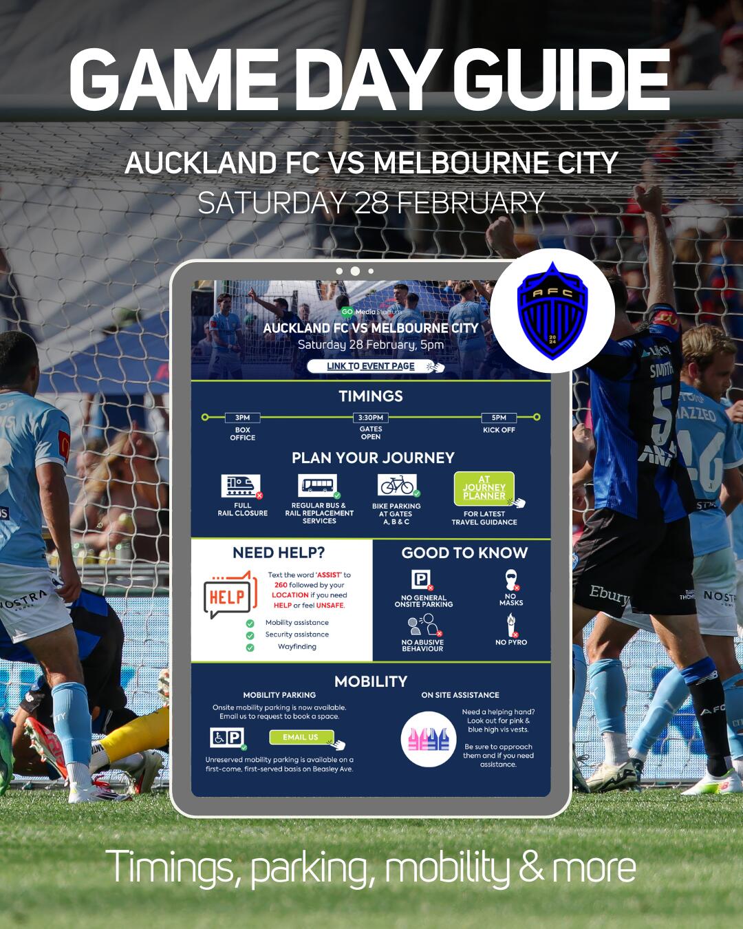 Here is Auckland Transport's guidance for reaching Go Media Stadium.