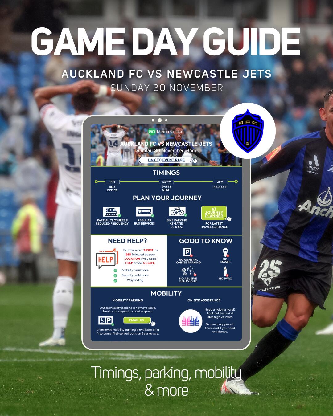 Here is Auckland Transport's guidance for reaching Go Media Stadium.
