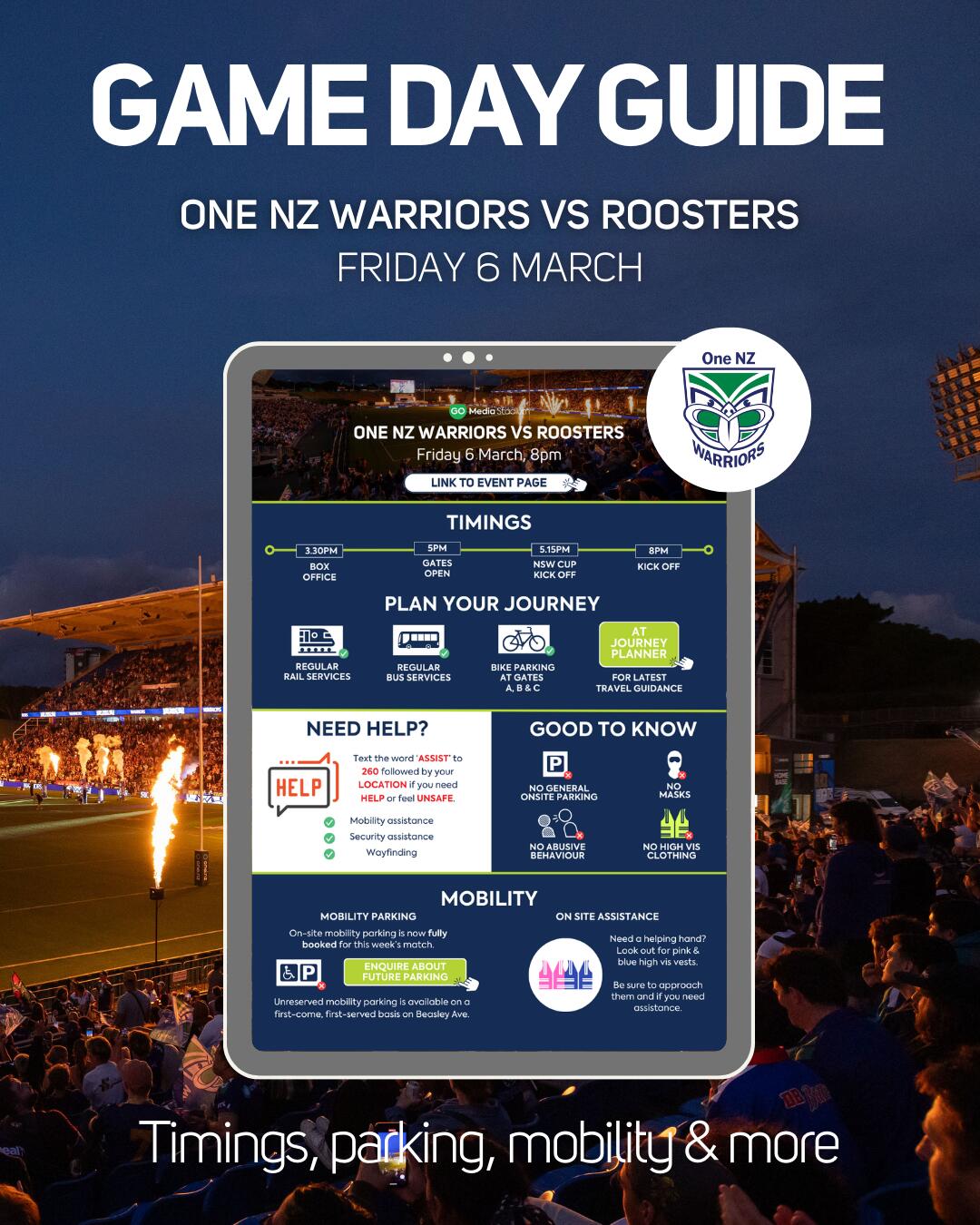 The One NZ Warriors face off against Roosters in the first home match of their 2026 NRL Season on Friday 6 March.