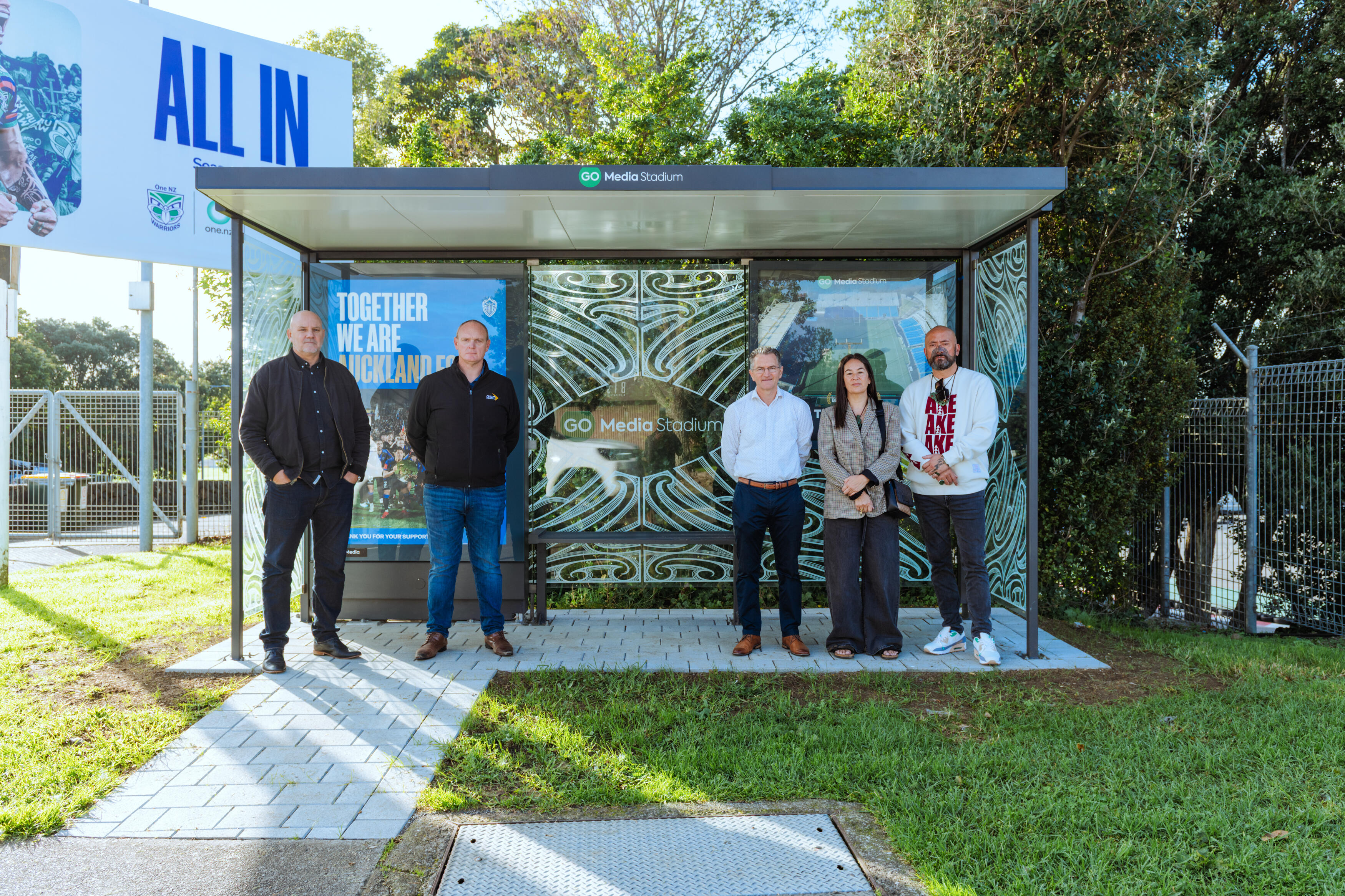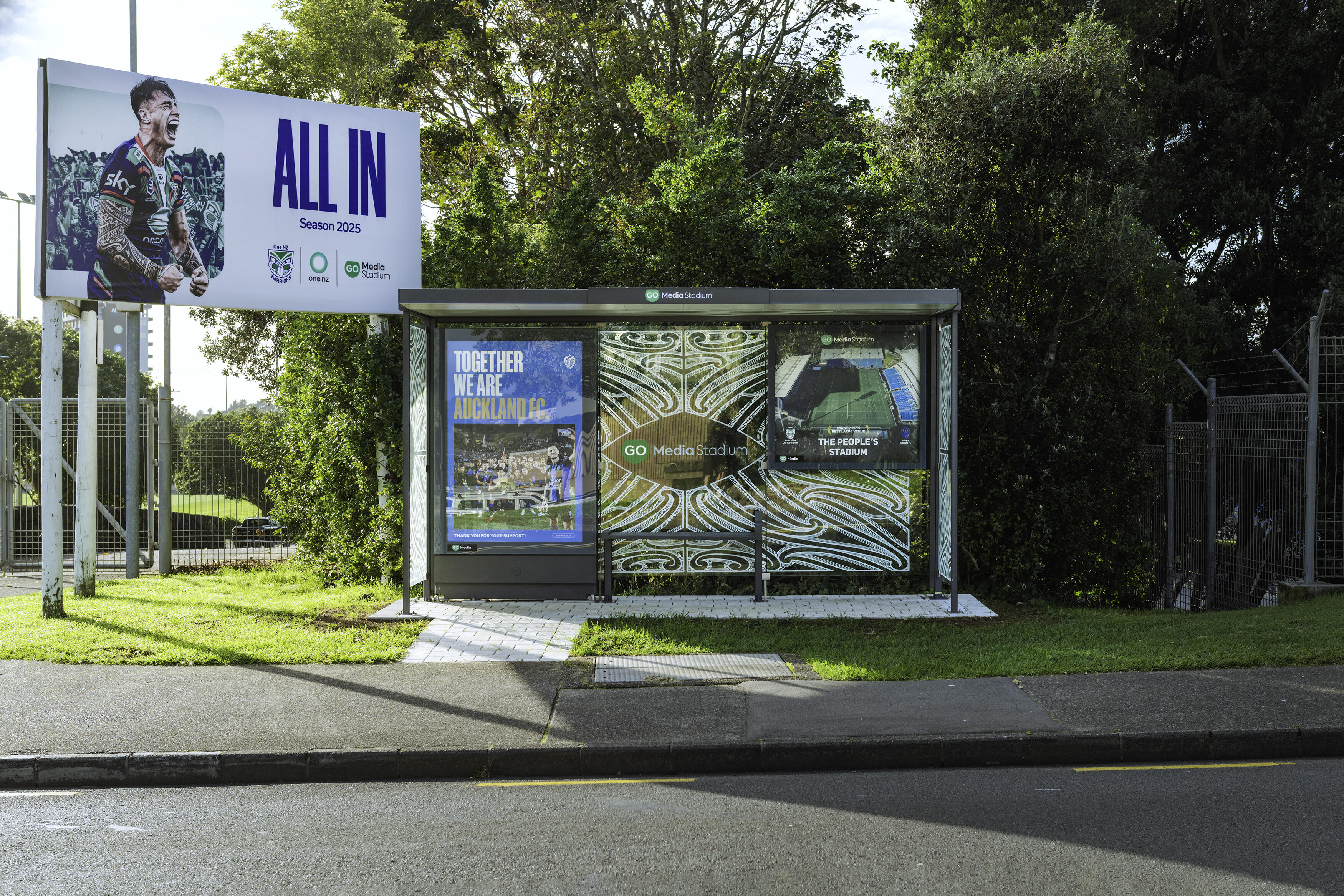 Outdoor advertising company Go Media has made it easier, and drier for fans leaving Auckland FC and One NZ Warriors games, thanks to a newly installed shelter outside Go Media Stadium.