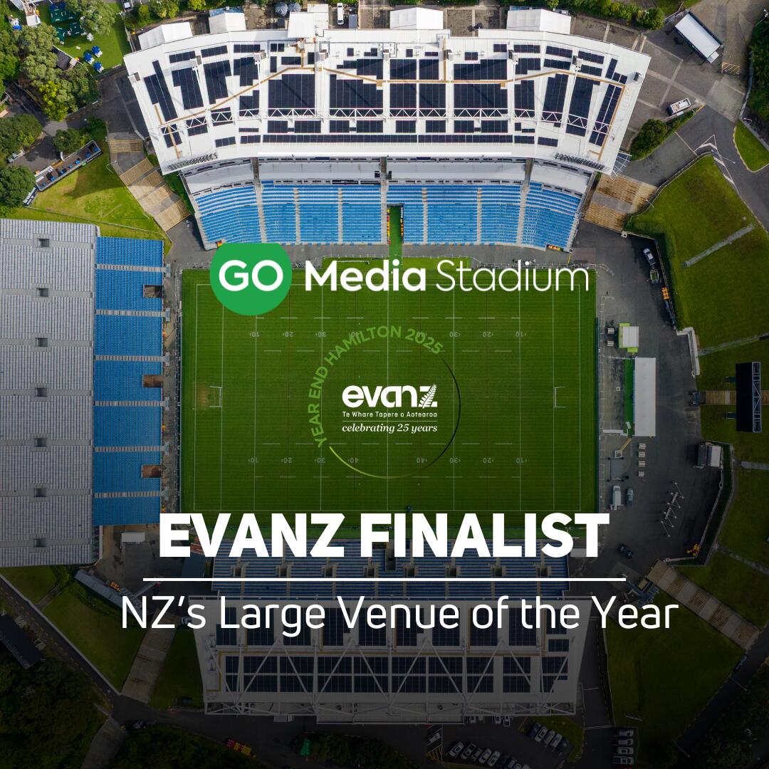 Go Media Stadium has once again been recognised on the national stage, being named a finalist for Large Venue of the Year at the 2025 EVANZ Awards.